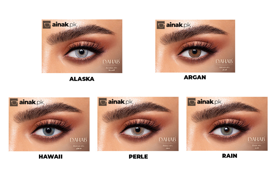Dahab Platinum contact lenses are available in Alaska, Argan, Hawaii, Perle, and Rain colors.
