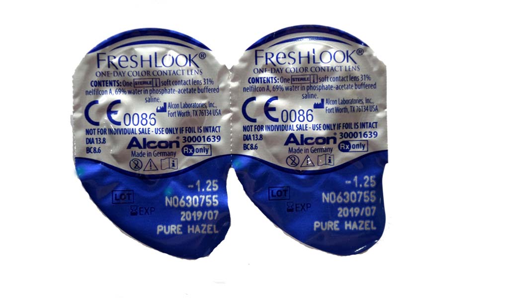 Freshlook oneday contact lenses are available in Gray, Pure Hazel, Blue and Green colors and it can be used for only 1 day.